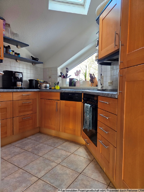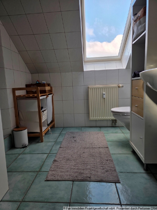 Des Weiteren finden Sie auf dieser Etage noch die Küche mit ihrer hochwertigen Einbauküche (Ceranfeld, Geschirrspüler, etc.), ein helles Kinderzimmer sowie ein Badezimmer mit Wanne, wandhängenden WC und Anschlussmöglichkeiten für Waschmaschine und Trockner.